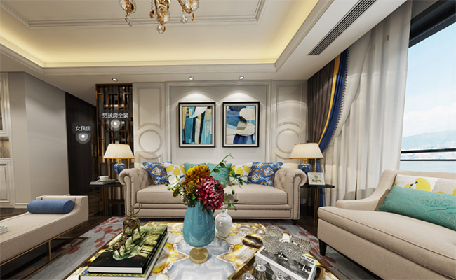 因為工作的特殊性,面對單色調毫無喜感。所以空間配色及造型選用飽和度較高的美式田園為主。輔以寓意良好的弧線型設計,讓空間倍感溫馨親切。