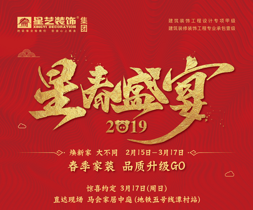 “好雨知時節,當春乃發生”春季家裝旺季來臨,裝修的小伙伴都在幸福的忙碌著。在這樣的時候,星藝裝修作為做為中國裝修行業的領先品牌,3月裝修季將為業主朋友打造一場品質家居的超值盛宴,聯合數十家建材品牌,在馬會家居舉辦“星春盛宴”家裝&建材特惠大型專場體驗活動,打造“保質保價放心好裝修”。活動現場精英設計師、星級工長超強陣容實力接單;明星建材薈萃,一律讓利大促;更有超多現場福利限時派發。