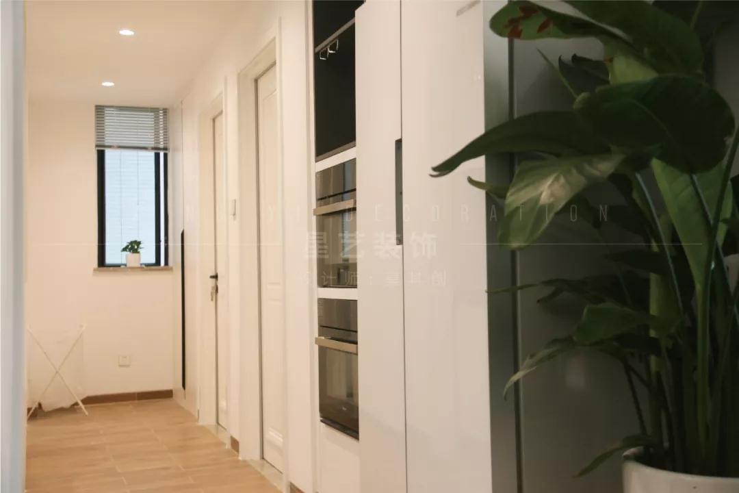 需要解決原廚房狹窄的問(wèn)題,把占用一定空間的衛(wèi)生間門移到原本過(guò)道的衣帽間的衛(wèi)生間,把廚房空的操作臺(tái)擴(kuò)大,而冰箱、烤箱和紅酒柜等設(shè)計(jì)在過(guò)道上,這樣廚房的空間也通透明亮起來(lái),又解決了衛(wèi)生間門口設(shè)計(jì)的問(wèn)題。