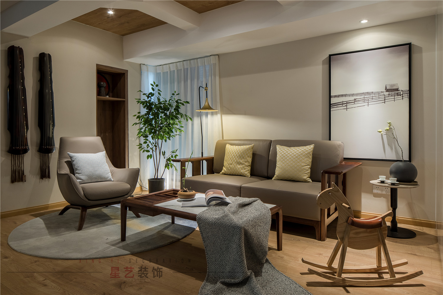 增添綠植讓客廳更加清新自然,結合角落處精心設計的小擺件,形成了絕美的藝術畫卷。