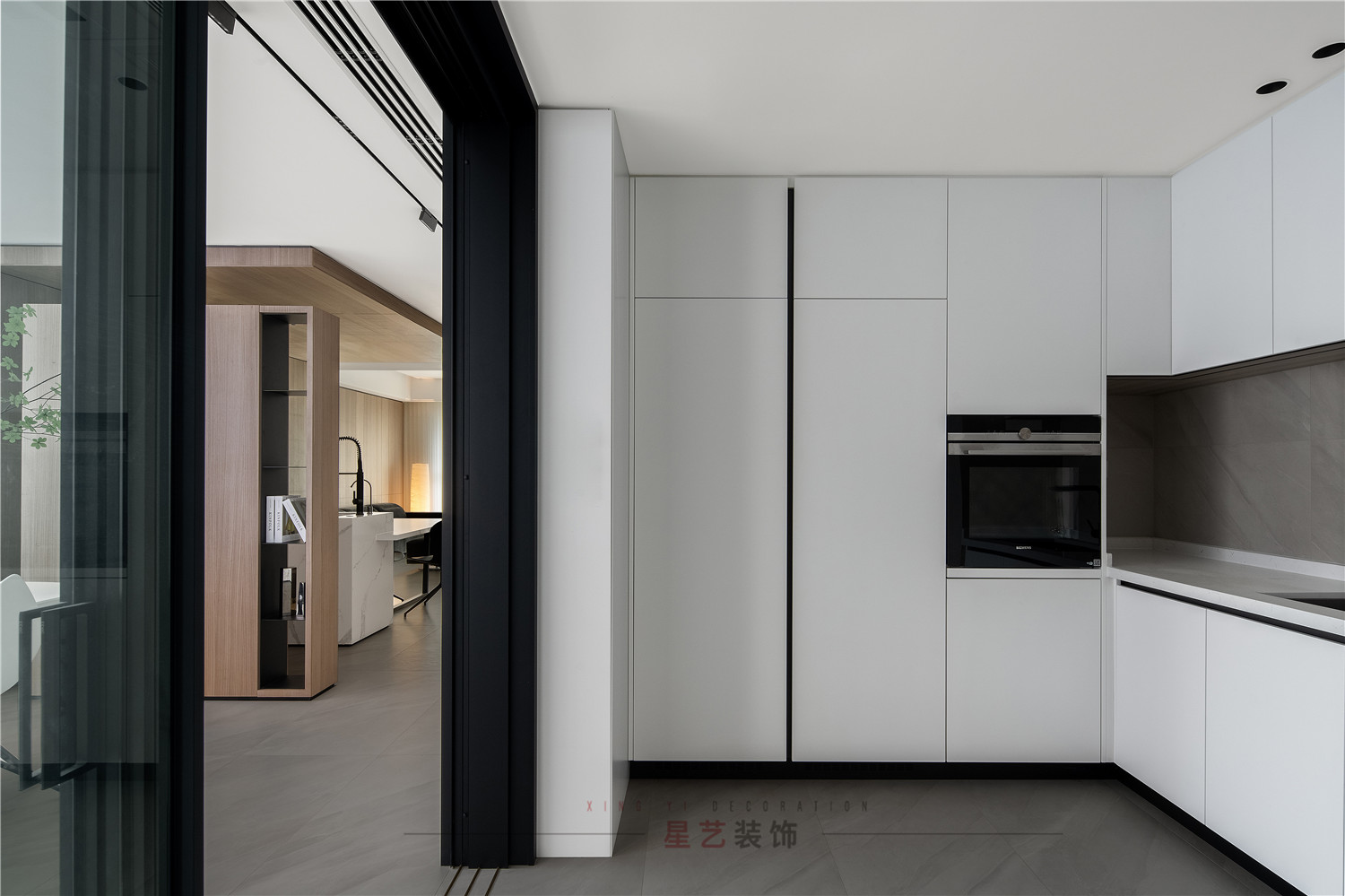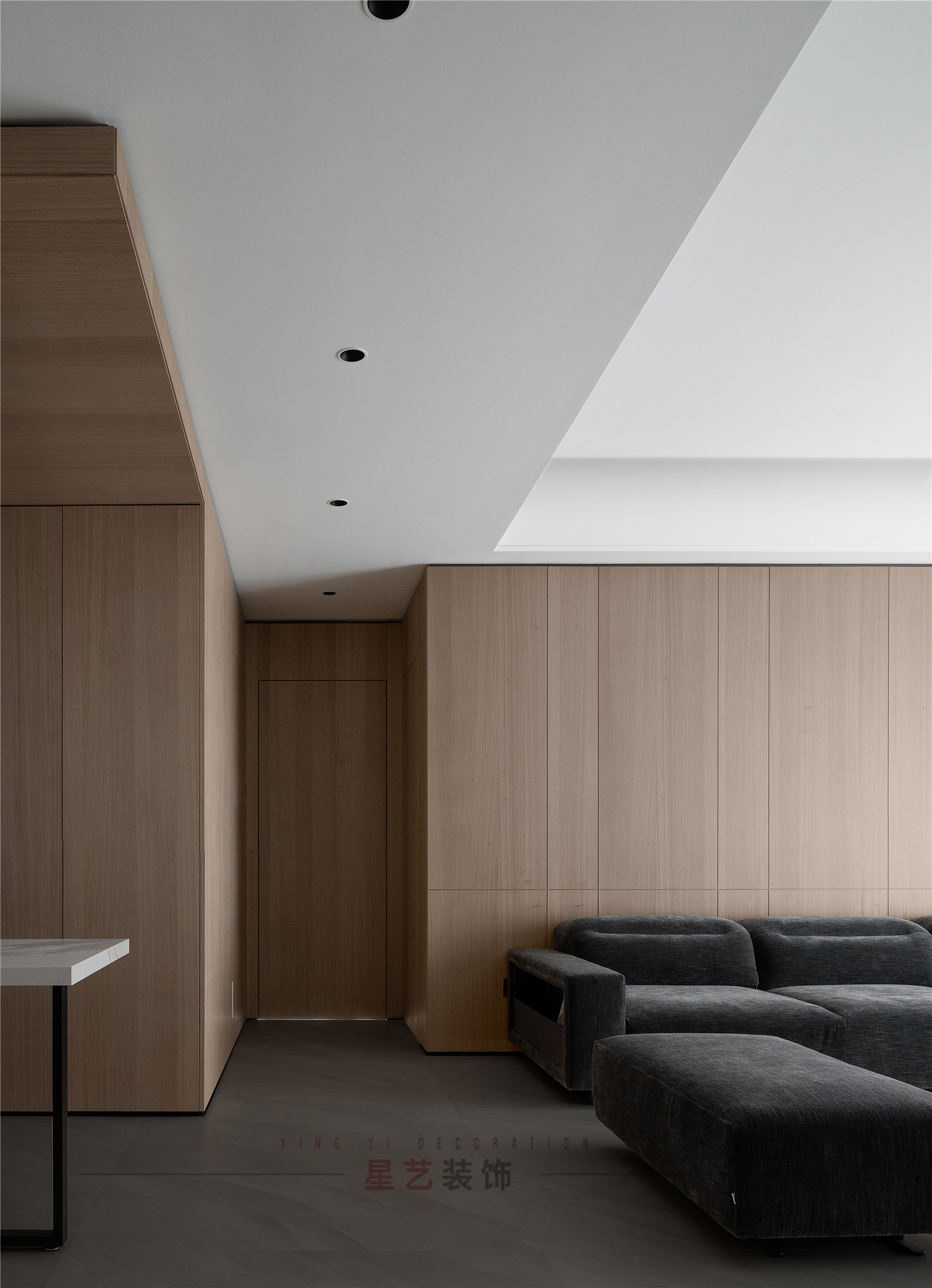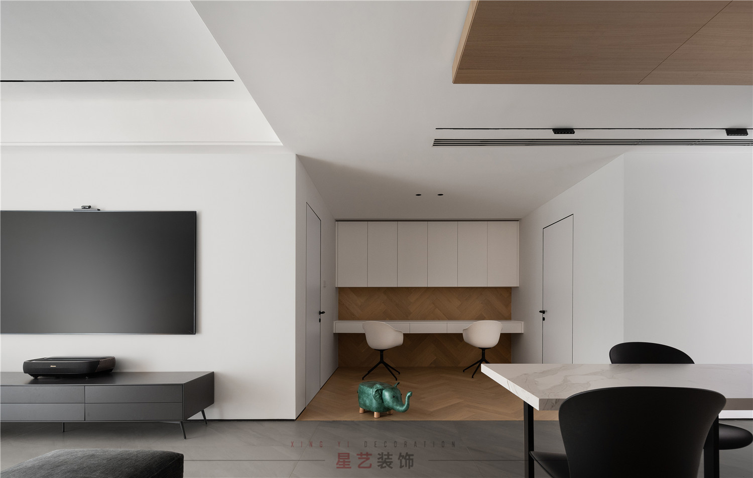 值得一提的是,整個設計都采用了大量的隱形門設計,利用空間的錯落造成視覺上落差,既不會顯得突兀也豐富了整體的空間層次。