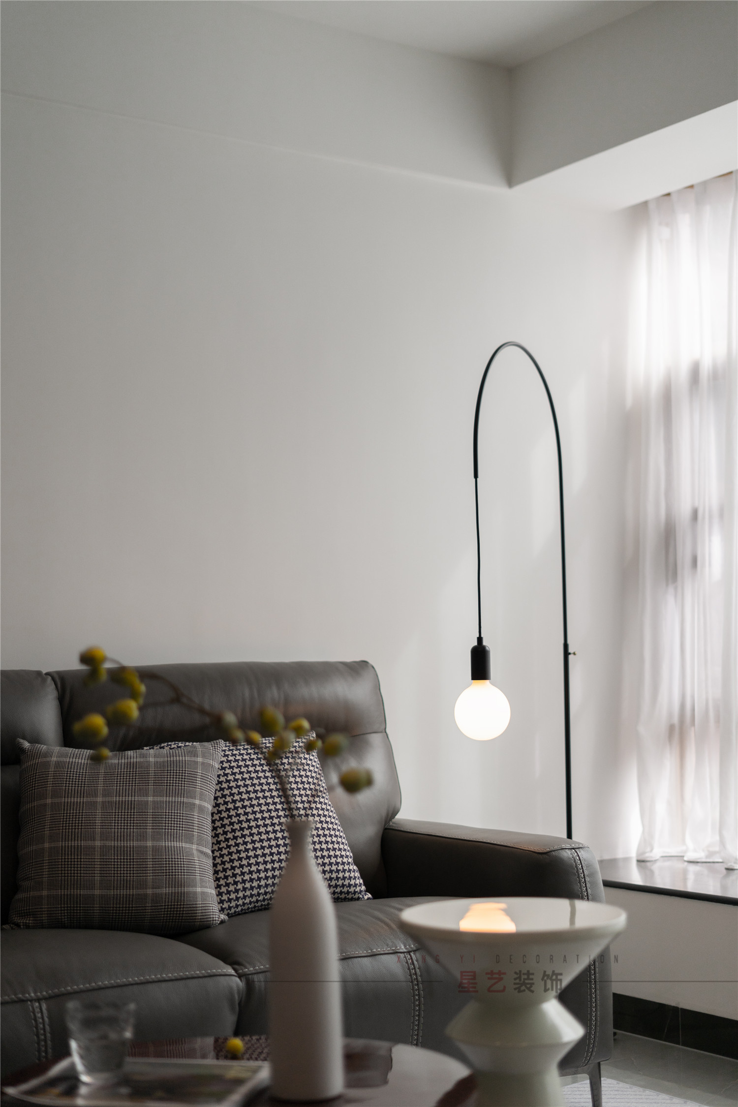 業主是前客戶介紹,舊房翻新,很多的需求和很多方案的事情基本都是網上確認溝通,也算是一種很奇特的體驗。本案的風格定位是簡約輕奢,主色調灰色配仿古的木色,配飾以精致的藝術品搭配提升空間品質,力求提煉到位。